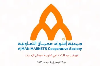 تعاونية عجمان الإمارات تعلن عن تخفيضات جديدة بعنوان « عروض عيد الإتحاد » المتوفرة حتي يوم 3 ديسمبر 2025, عروض جديدة وأسعار فقط في الإمارات.