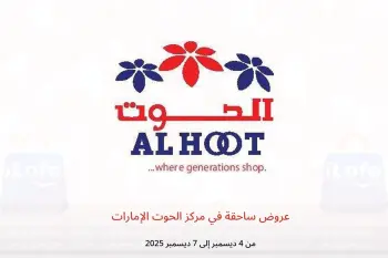 مركز الحوت الإمارات تعلن عن تخفيضات جديدة بعنوان « عروض ساحقة » المتوفرة حتي يوم 7 ديسمبر 2025, عروض جديدة وأسعار فقط في الإمارات.