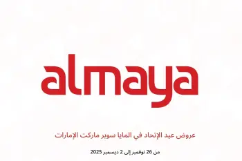 صور وأسعار عروض عيد الإتحاد في المايا سوبر ماركت الإمارات المعروضة هنا لأغراض توضيحية فقط ومتاحة من الأربعاء, 26 نوفمبر 2025 حتي الثلاثاء, 2 ديسمبر 2025 ،من i L O F O . C O M.