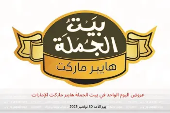 صور وأسعار عروض اليوم الواحد في بيت الجملة هايبر ماركت الإمارات المعروضة هنا لأغراض توضيحية فقط ومتاحة من الأحد, 30 نوفمبر 2025 حتي الأحد, 30 نوفمبر 2025 ،من i L O F O . C O M.