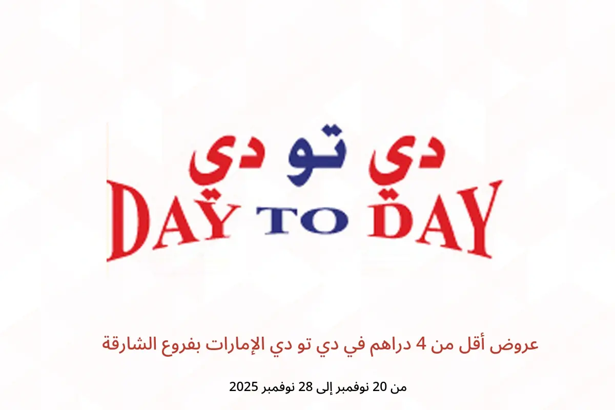 دي تو دي الإمارات بفروع الشارقة تعلن عن تخفيضات جديدة بعنوان « عروض أقل من 4 دراهم » المتوفرة حتي يوم 28 نوفمبر 2025, عروض جديدة وأسعار فقط في الإمارات.