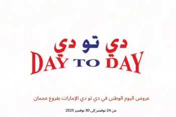دي تو دي الإمارات بفروع عجمان تعلن عن تخفيضات جديدة بعنوان « عروض اليوم الوطنى » المتوفرة حتي يوم 30 نوفمبر 2025, عروض جديدة وأسعار فقط في الإمارات.