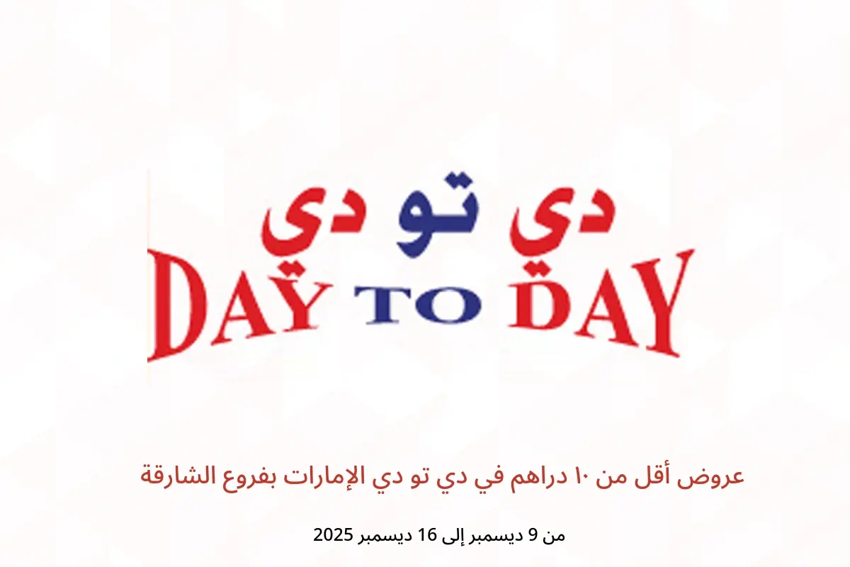 دي تو دي الإمارات بفروع الشارقة تعلن عن تخفيضات جديدة بعنوان « عروض أقل من ١٠ دراهم » المتوفرة حتي يوم 16 ديسمبر 2025, عروض جديدة وأسعار فقط في الإمارات.