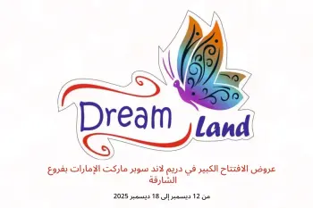 دريم لاند سوبر ماركت الإمارات بفروع الشارقة تعلن عن تخفيضات جديدة بعنوان « عروض الافتتاح الكبير » المتوفرة حتي يوم 18 ديسمبر 2025, عروض جديدة وأسعار فقط في الإمارات.