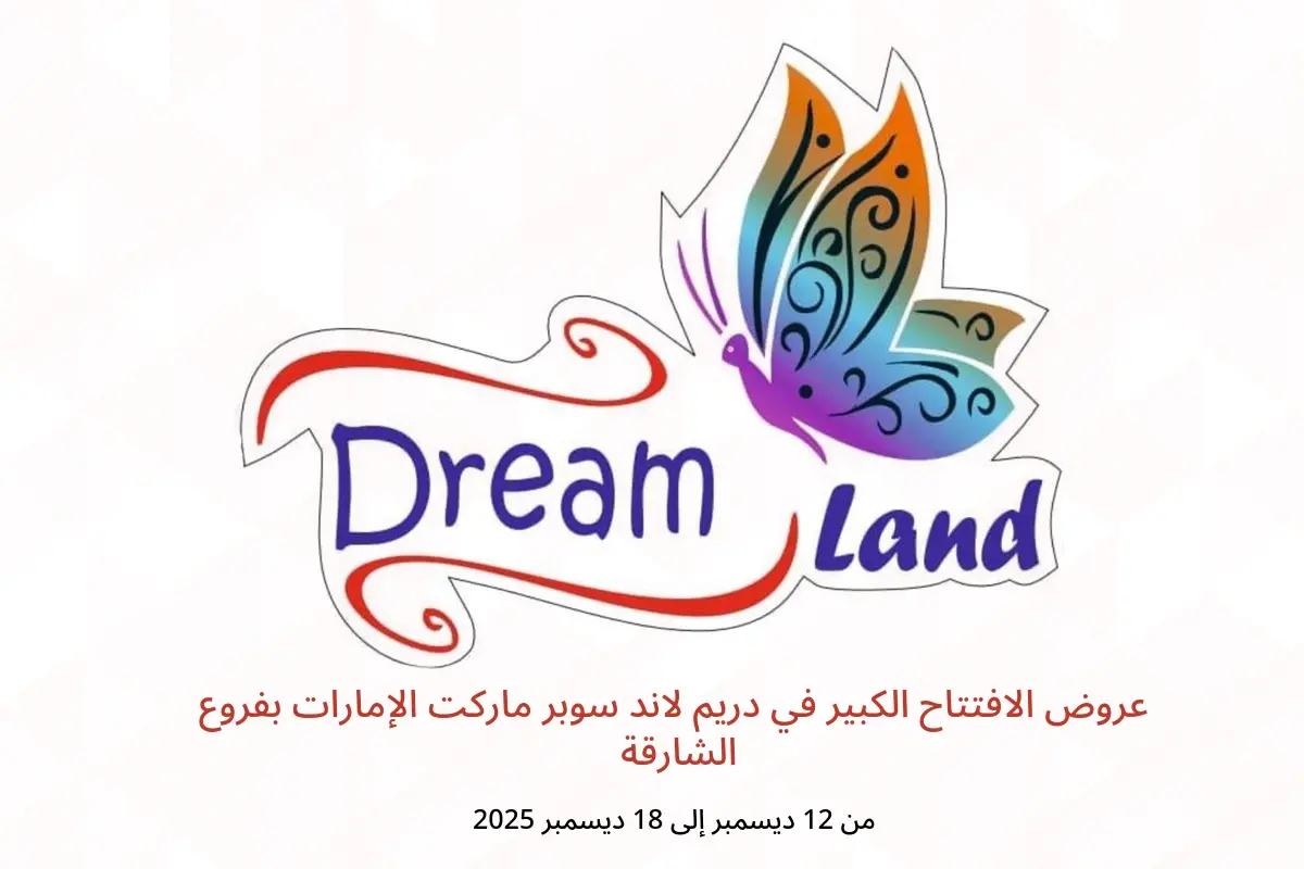 صور وأسعار عروض الافتتاح الكبير في دريم لاند سوبر ماركت الإمارات بفروع الشارقة المعروضة هنا لأغراض توضيحية فقط ومتاحة من الجمعة, 12 ديسمبر 2025 حتي الخميس, 18 ديسمبر 2025 ،من i L O F O . C O M.