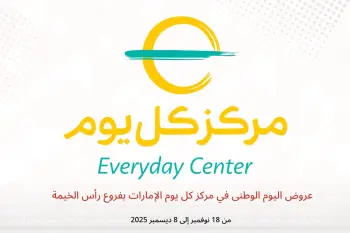 مركز كل يوم الإمارات بفروع رأس الخيمة تعلن عن تخفيضات جديدة بعنوان « عروض اليوم الوطنى » المتوفرة حتي يوم 8 ديسمبر 2025, عروض جديدة وأسعار فقط في الإمارات.