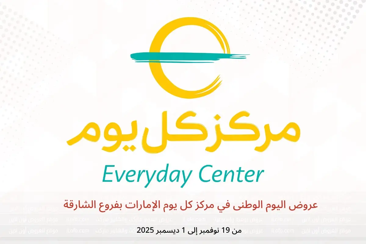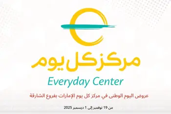 مركز كل يوم الإمارات بفروع الشارقة تعلن عن تخفيضات جديدة بعنوان « عروض اليوم الوطنى » المتوفرة حتي يوم 1 ديسمبر 2025, عروض جديدة وأسعار فقط في الإمارات.
