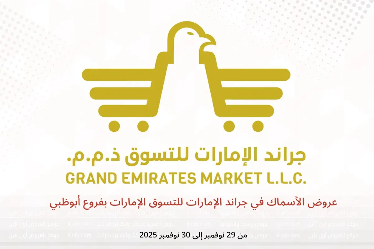 جراند الإمارات للتسوق الإمارات بفروع أبوظبي تعلن عن تخفيضات جديدة بعنوان « عروض الأسماك » المتوفرة حتي يوم 30 نوفمبر 2025, عروض جديدة وأسعار فقط في الإمارات.