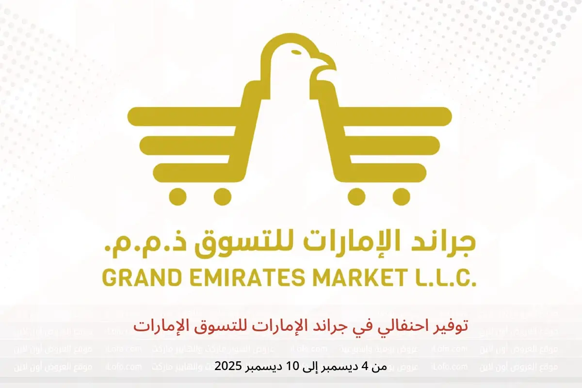 جراند الإمارات للتسوق الإمارات تعلن عن تخفيضات جديدة بعنوان « توفير احنفالي » المتوفرة حتي يوم 10 ديسمبر 2025, عروض جديدة وأسعار فقط في الإمارات.