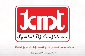 ك إم للتجارة الإمارات بفروع الشارقة تعلن عن تخفيضات جديدة بعنوان « عروض ليومين فقط » المتوفرة حتي يوم 14 ديسمبر 2025, عروض جديدة وأسعار فقط في الإمارات.