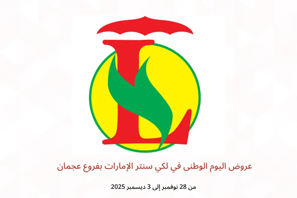 لكي سنتر الإمارات بفروع عجمان تعلن عن تخفيضات جديدة بعنوان « عروض اليوم الوطنى » المتوفرة حتي يوم 3 ديسمبر 2025, عروض جديدة وأسعار فقط في الإمارات.