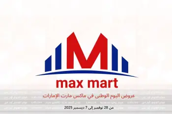 عروض اليوم الوطنى في ماكس مارت الإمارات من 28 نوفمبر حتى 7 ديسمبر
