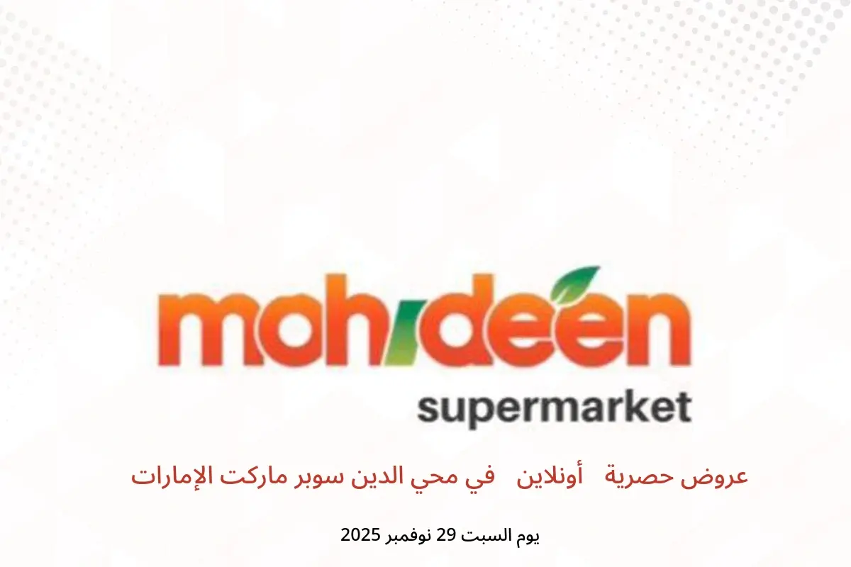 محي الدين سوبر ماركت الإمارات تعلن عن تخفيضات جديدة بعنوان « عروض حصرية (أونلاين) » المتوفرة حتي يوم 29 نوفمبر 2025, عروض جديدة وأسعار فقط في الإمارات.