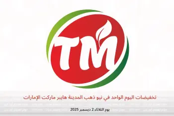 تخفيضات اليوم الواحد في نيو ذهب المدينة هايبر ماركت الإمارات يوم الثلاثاء 2 ديسمبر