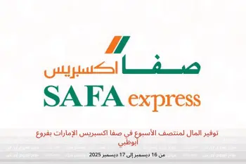 صفا اكسبريس الإمارات بفروع أبوظبي تعلن عن تخفيضات جديدة بعنوان « توفير المال لمنتصف الأسبوع » المتوفرة حتي يوم 17 ديسمبر 2025, عروض جديدة وأسعار فقط في الإمارات.