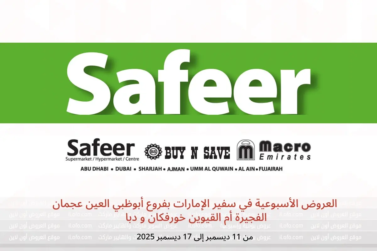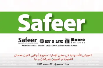 صور وأسعار العروض الأسبوعية في سفير الإمارات بفروع أبوظبي العين عجمان الفجيرة أم القيوين خورفكان و دبا المعروضة هنا لأغراض توضيحية فقط ومتاحة من الخميس, 11 ديسمبر 2025 حتي الأربعاء, 17 ديسمبر 2025 ،من i L O F O . C O M.