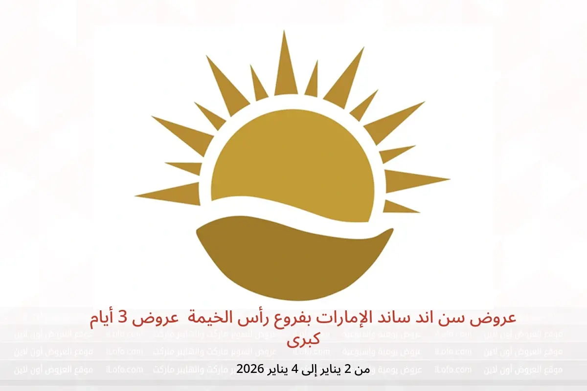 اكتشف أحدث عروض سن اند ساند في الإمارات اليوم بفروع رأس الخيمة وتصفح كاتالوج عروض 3 أيام كبرى واستفد من أفضل الأسعار حتى 4 يناير 2026.