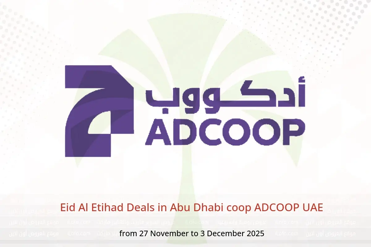 Abu Dhabi coop ADCOOP UAE announces new discounts titled « Eid Al Etihad Deals » available until 3 December 2025, new offers and prices only in UAE.