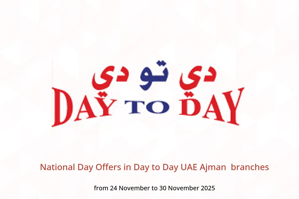 Day to Day UAE in Ajman branches announces new discounts titled « National Day Offers » available until 30 November 2025, new offers and prices only in UAE.