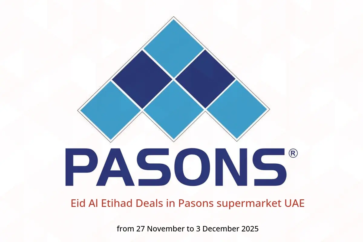 Pasons supermarket UAE announces new discounts titled « Eid Al Etihad Deals » available until 3 December 2025, new offers and prices only in UAE.