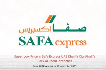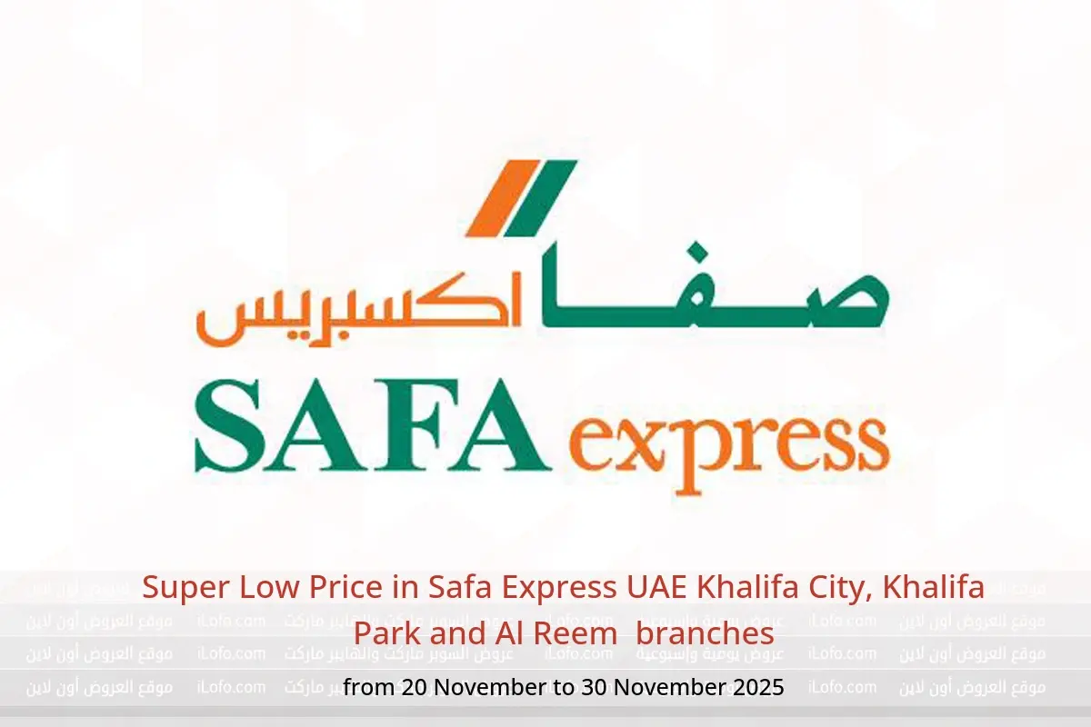 Super Low Price in Safa Express Khalifa City, Khalifa Park and Al Reem from 20 to 30 November