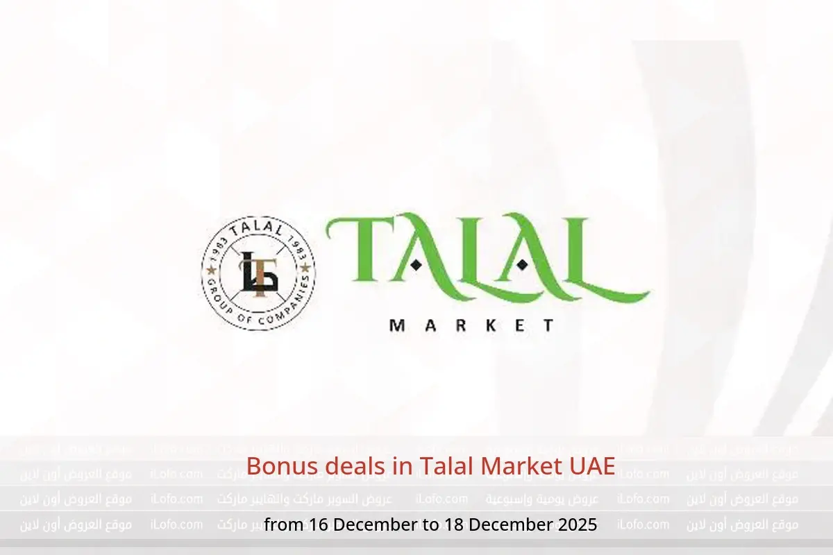 Talal Market UAE announces new discounts titled « Bonus deals » available until 18 December 2025, new offers and prices only in UAE.
