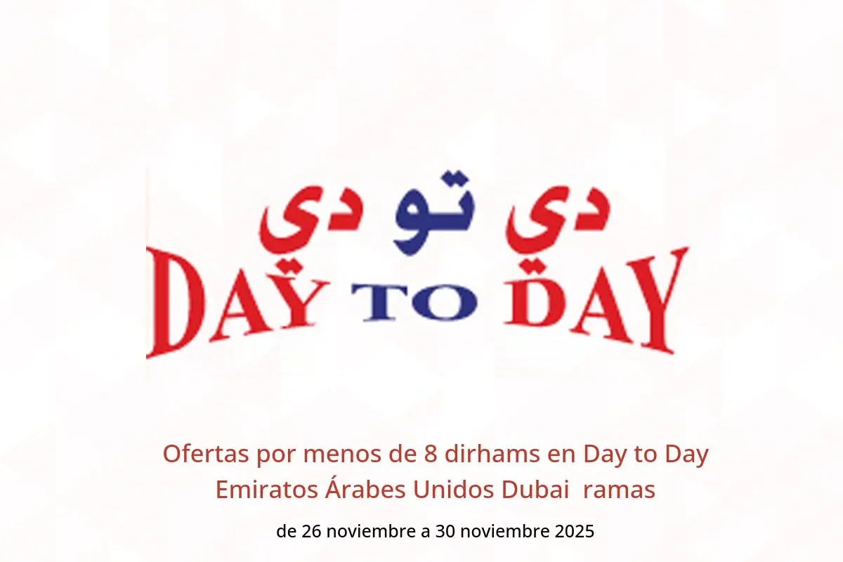 Day to Day Emiratos Árabes Unidos en sucursales Dubai anuncia nuevos descuentos titulados « Ofertas por menos de 8 dirhams » disponibles hasta el día 30 noviembre 2025, nuevas ofertas y precios sólo en Emiratos Árabes Unidos.