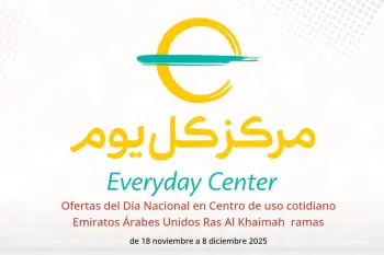 Centro de uso cotidiano Emiratos Árabes Unidos en sucursales Ras Al Khaimah anuncia nuevos descuentos titulados « Ofertas del Día Nacional » disponibles hasta el día 8 diciembre 2025, nuevas ofertas y precios sólo en Emiratos Árabes Unidos.