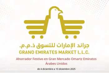 Gran Mercado Omartz Emiratos Árabes Unidos anuncia nuevos descuentos titulados « Ahorrador Festivo » disponibles hasta el día 10 diciembre 2025, nuevas ofertas y precios sólo en Emiratos Árabes Unidos.
