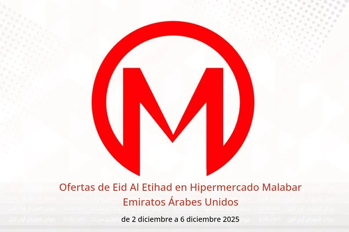 Hipermercado Malabar Emiratos Árabes Unidos anuncia nuevos descuentos titulados « Ofertas de Eid Al Etihad » disponibles hasta el día 6 diciembre 2025, nuevas ofertas y precios sólo en Emiratos Árabes Unidos.