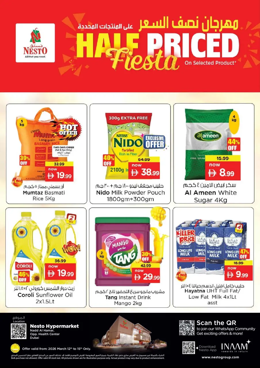 Ofertas de Nesto Hipermercados Emiratos Árabes Unidos en las sucursales Nd Alhmr Festival a medio precio de 12 a 15 marzo 2026