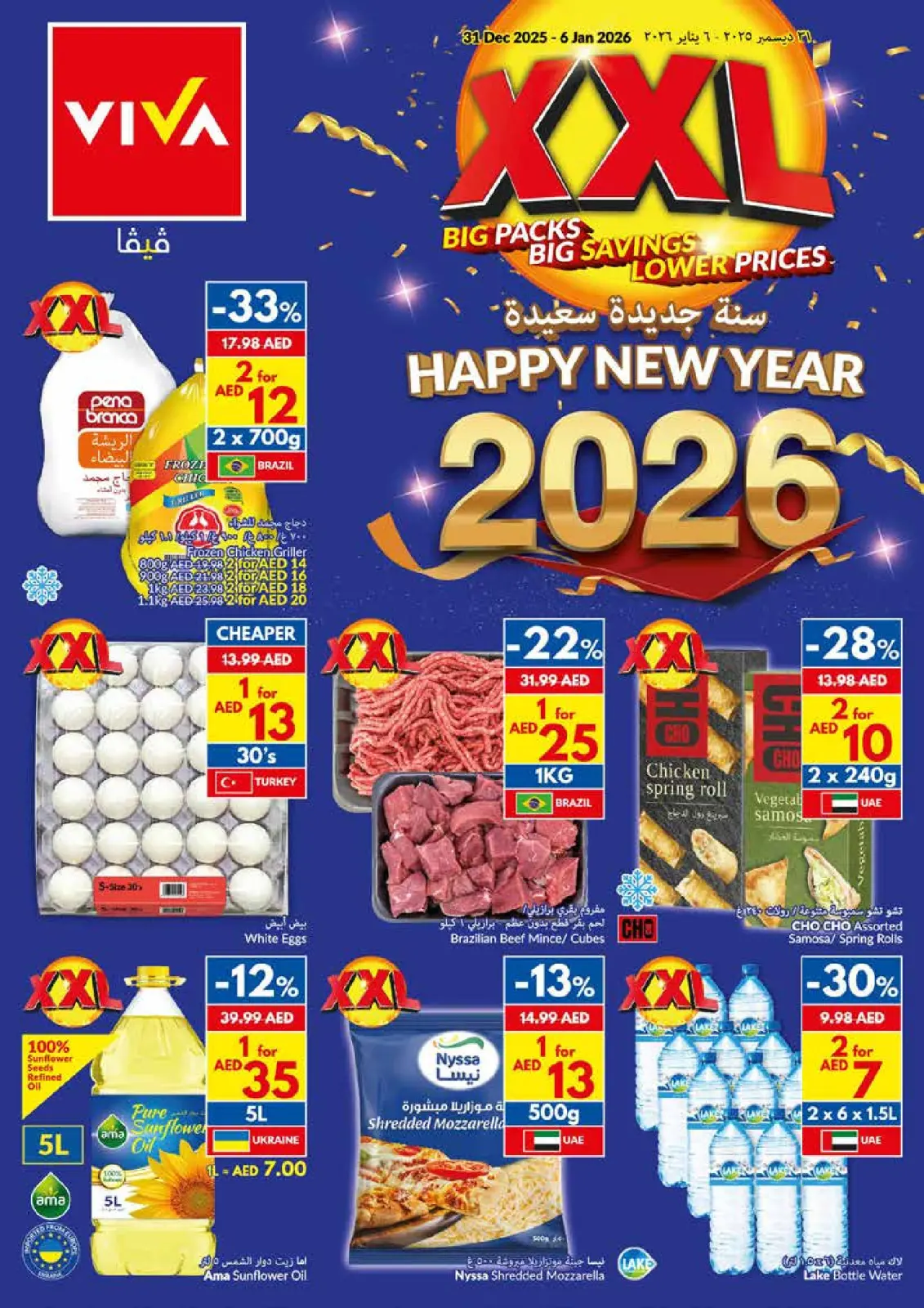 Ofertas de supermercado Viva Emiratos Árabes Unidos de 31 diciembre a 6 enero 2026 Paquetes Grandes, Grandes Ahorros, Precios Más Bajos