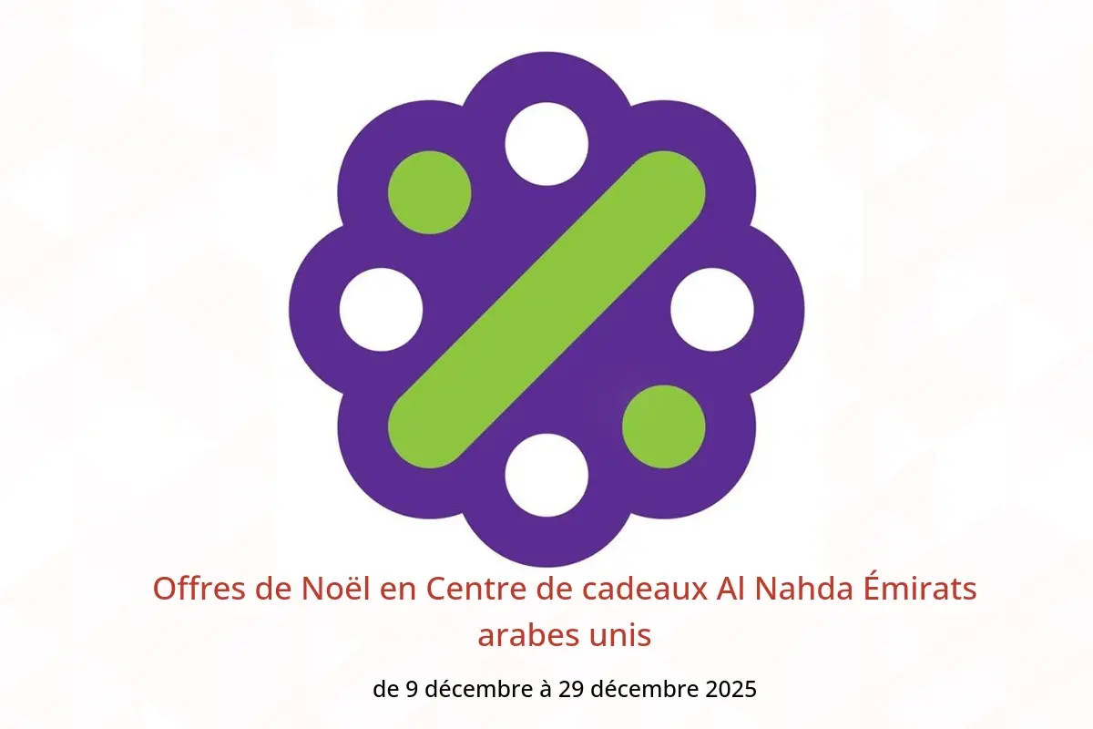 Centre de cadeaux Al Nahda Émirats arabes unis annonce de nouvelles réductions intitulées « Offres de Noël » disponibles jusqu'au 29 décembre 2025, de nouvelles offres et prix uniquement en Émirats arabes unis.