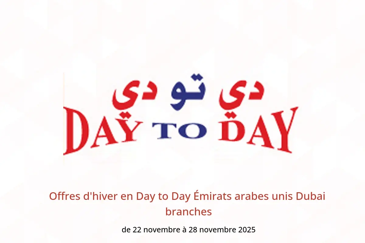 Day to Day Émirats arabes unis dans les branches Dubai annonce de nouvelles réductions intitulées « Offres d'hiver » disponibles jusqu'au 28 novembre 2025, de nouvelles offres et prix uniquement en Émirats arabes unis.