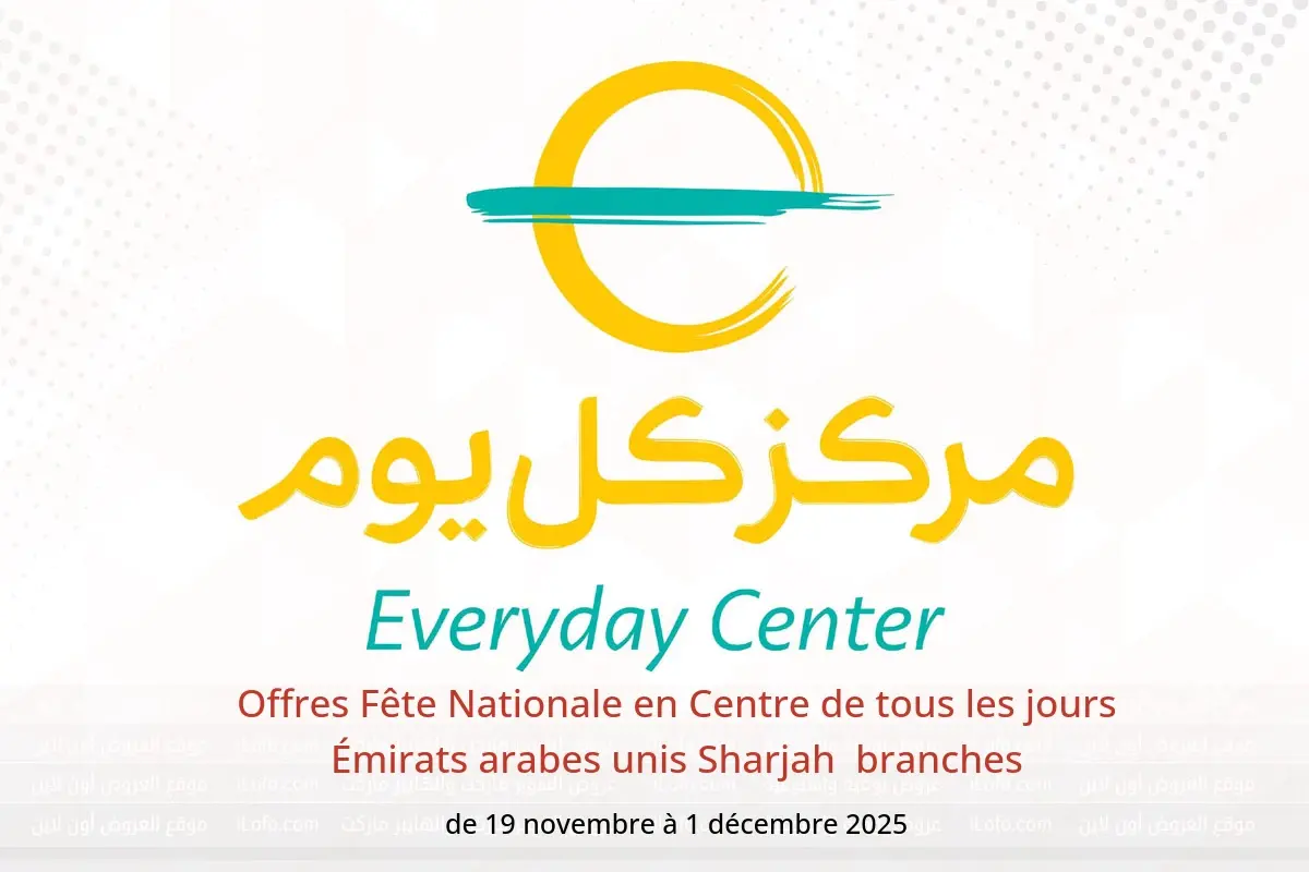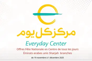 Centre de tous les jours Émirats arabes unis dans les branches Sharjah annonce de nouvelles réductions intitulées « Offres Fête Nationale » disponibles jusqu'au 1 décembre 2025, de nouvelles offres et prix uniquement en Émirats arabes unis.
