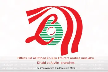 lulu Émirats arabes unis dans les branches Abu Dhabi et Al Ain annonce de nouvelles réductions intitulées « Offres Eid Al Etihad » disponibles jusqu'au 5 décembre 2025, de nouvelles offres et prix uniquement en Émirats arabes unis.