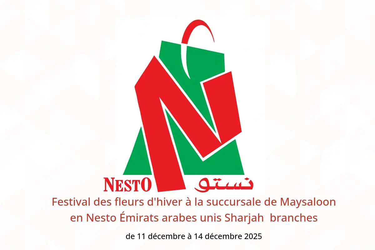 Nesto Émirats arabes unis dans les branches Sharjah annonce de nouvelles réductions intitulées « Festival des fleurs d'hiver à la succursale de Maysaloon » disponibles jusqu'au 14 décembre 2025, de nouvelles offres et prix uniquement en Émirats arabes unis.