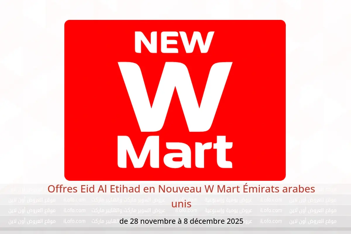 Nouveau W Mart Émirats arabes unis annonce de nouvelles réductions intitulées « Offres Eid Al Etihad » disponibles jusqu'au 8 décembre 2025, de nouvelles offres et prix uniquement en Émirats arabes unis.