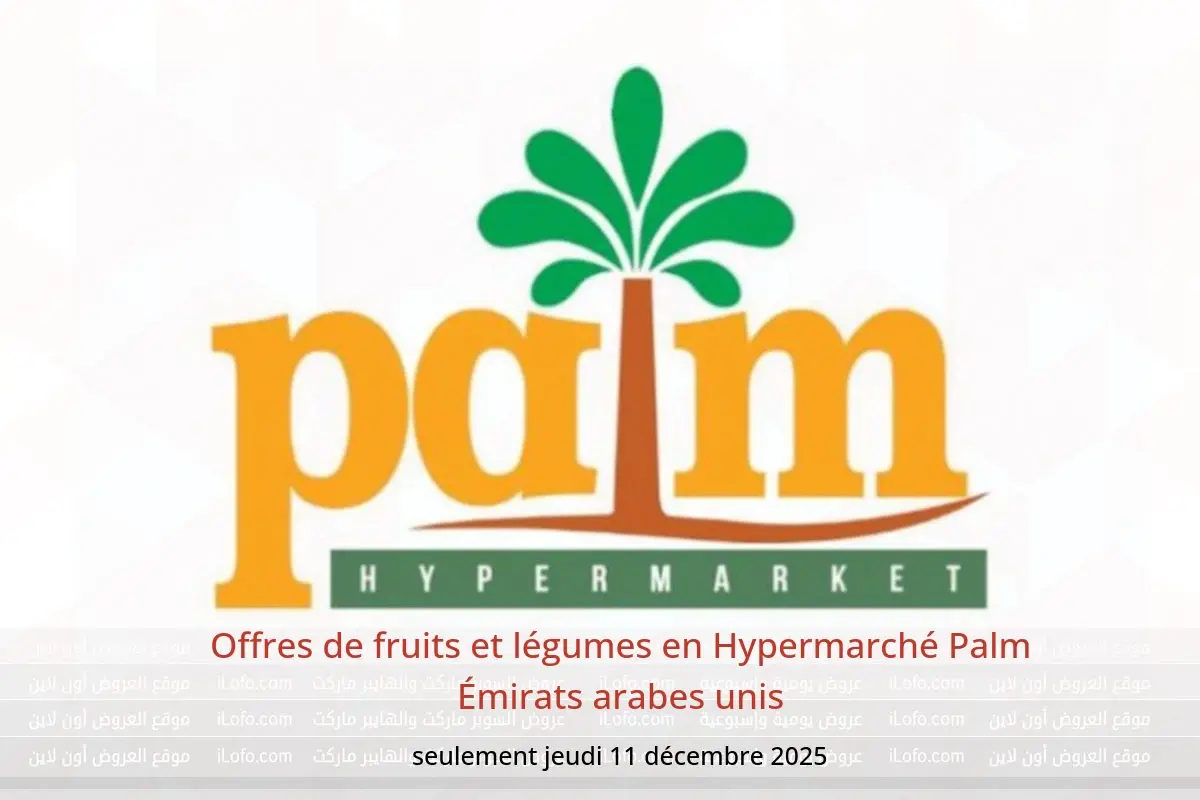 Hypermarché Palm Émirats arabes unis annonce de nouvelles réductions intitulées « Offres de fruits et légumes » disponibles jusqu'au 11 décembre 2025, de nouvelles offres et prix uniquement en Émirats arabes unis.