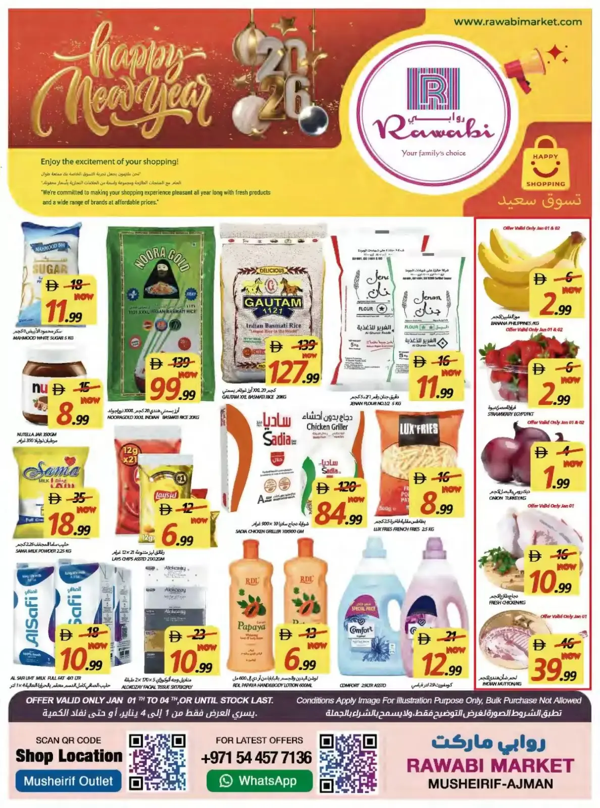 Avertissement: Photos et prix pour Offres du Nouvel An en Marchés de Rawabi Émirats arabes unis Présentés dans ce catalogue à titre indicatif uniquement et soumis à la disponibilité dans les magasins pendant la période de l’offre.