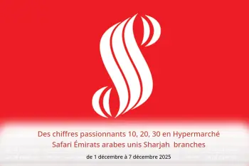 Hypermarché Safari Émirats arabes unis dans les branches Sharjah annonce de nouvelles réductions intitulées « Des chiffres passionnants 10, 20, 30 » disponibles jusqu'au 7 décembre 2025, de nouvelles offres et prix uniquement en Émirats arabes unis.