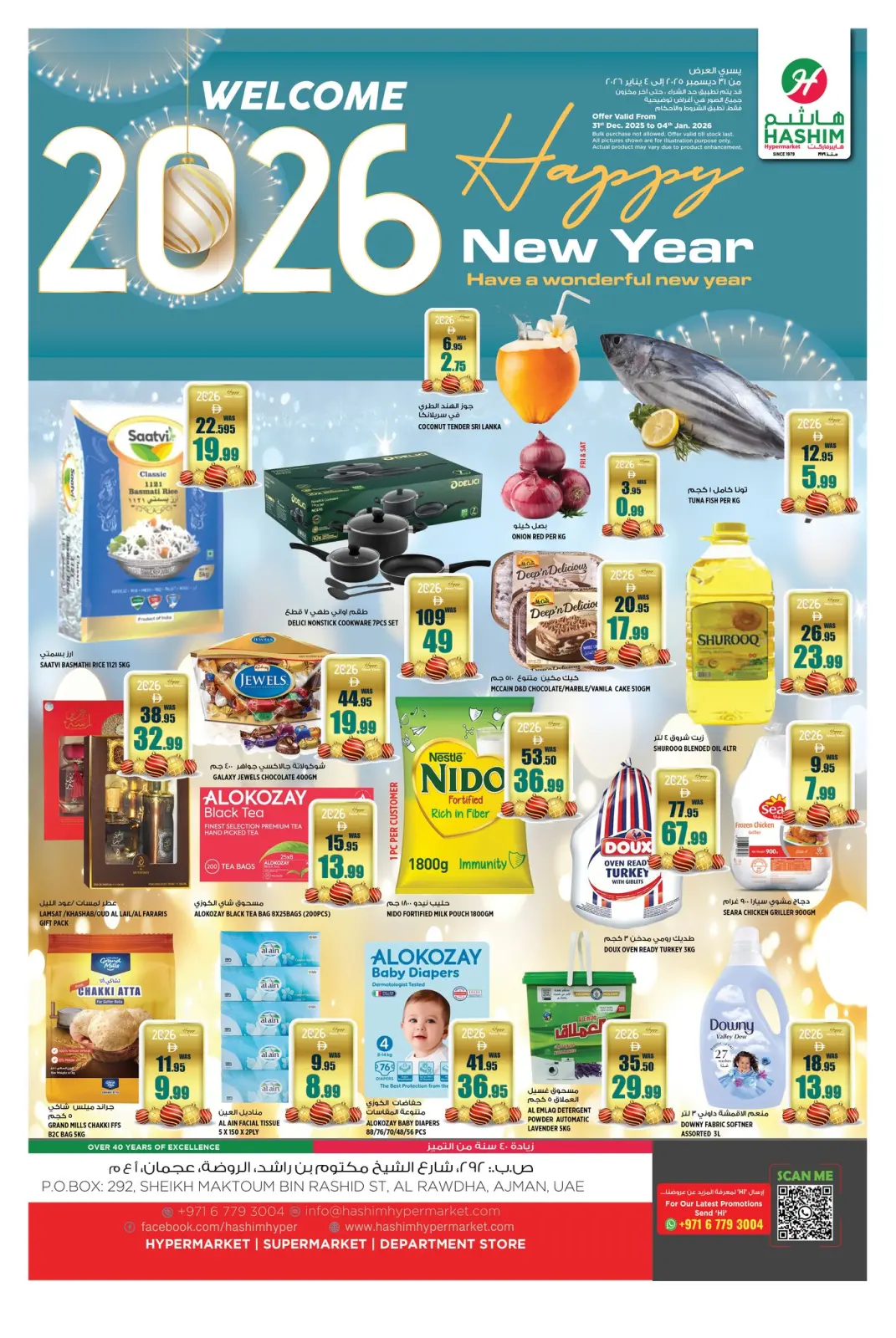 تنويه: صور وأسعار عروض هاشم هايبر ماركت الإمارات بفروع عجمان عروض العام الجديد المعروضة في هذا الكاتالوج لأغراض توضيحية فقط، وتخضع للتوفر في الفروع خلال فترة العرض.