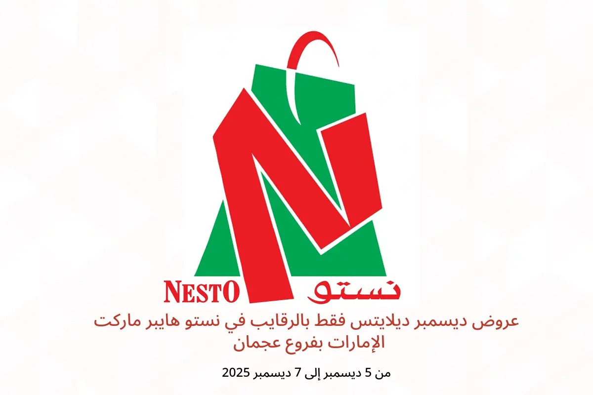 اكتشف أحدث عروض نستو هايبر ماركت في الإمارات اليوم بفروع عجمان وتصفح كاتالوج عروض ديسمبر ديلايتس فقط بالرقايب واستفد من أفضل الأسعار حتى 7 ديسمبر 2025.