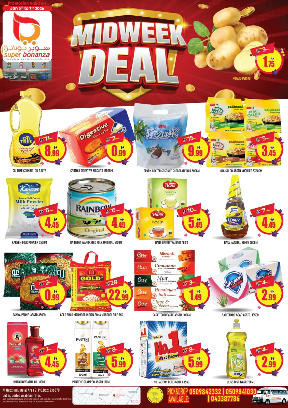 تنويه: صور وأسعار عروض سوبر بونانزا الإمارات بفروع القوز صفقات منتصف الأسبوع المعروضة في هذا الكاتالوج لأغراض توضيحية فقط، وتخضع للتوفر في الفروع خلال فترة العرض.